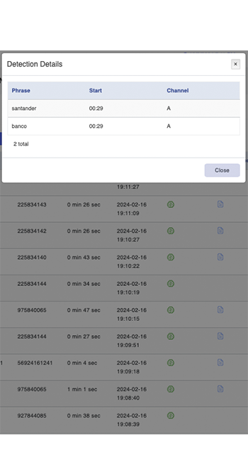 Currently it is a challenge to find threats or fraud, the intelligent detection tool will be able to detect words or phrases mentioned in one or thousands of calls, by simply writing them in a detection profile the system will perform an analysis providing a detailed result of the call and the threat found, the call time, etc.